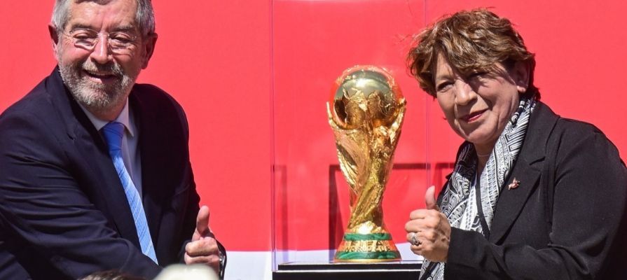La Gobernadora Delfina Gómez Álvarez recibió el trofeo oficial del Mundial 2026 en el AIFA, el cual iniciará su recorrido por el país del 28 de febrero al 22 de marzo.